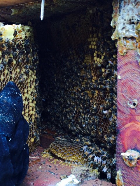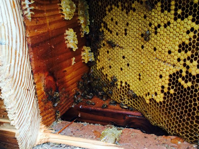 Depending on how healthy the hive is, we try to reestablish them. It isn’t always possible since sometimes the honey bees have been misidentified as yellow jackets, and the homeowner, or someone the homeowner hired, has treated them with insecticide. But for the most part, we reestablish them in hives.